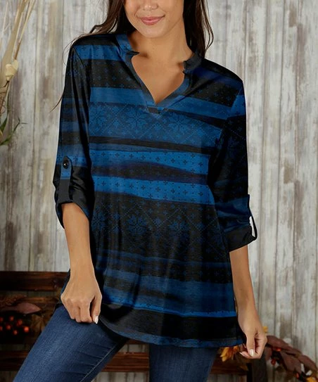 Relaxed tunic featuring a dash of stretch in the material and convenient roll-tab sleeves.