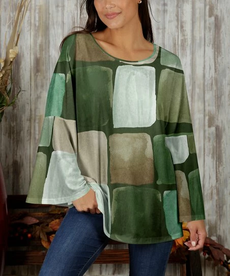Light, stretch-infused top featuring an abstract print and flared sleeves.
