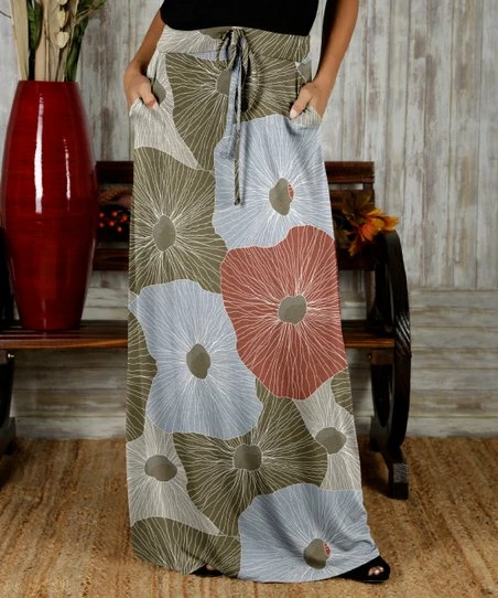 Add this patterned skirt to your closet and enjoy the side pockets and drawstring waist.