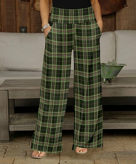 Flowy wide-leg pants featuring stretch-blend material and convenient side pockets.