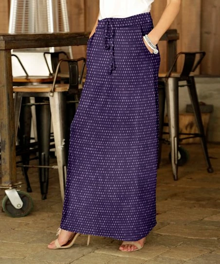 A flowy maxi skirt with a drawstring waist and allover print. Pockets on the sides.