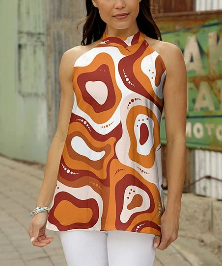 Take a new groovy fashion step with this retro-inspired halter top that’s sure to turn the clock back.
