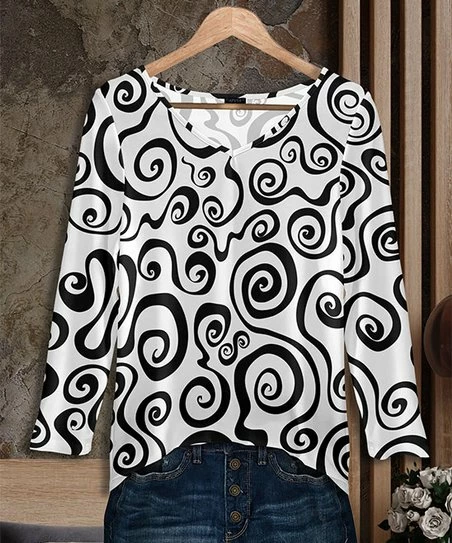 Laid-back tunic defined by a flattering v-neckline and long sleeves to keep you covered.