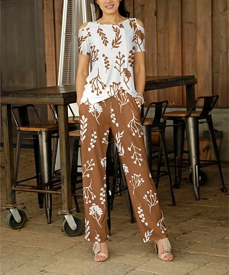 Coordinated top and pant set crafted from lightweight material to complete your closet.