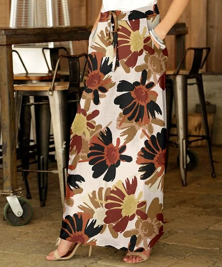 A soft-stretch maxi skirt designed with always-handy side pockets and a drawstring waist for a comfortable fit.