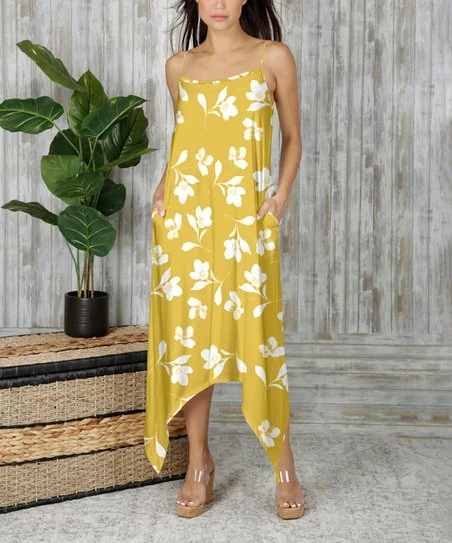 This maxi-length dress features skinny straps, a pointed sidetail hem and two side pockets.